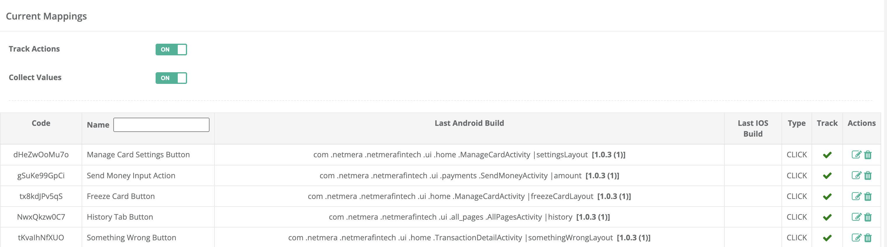 Use the **Track** toggle/button to decide whether this mapping should be actively tracked. This allows you to save mappings without enabling them immediately if needed.