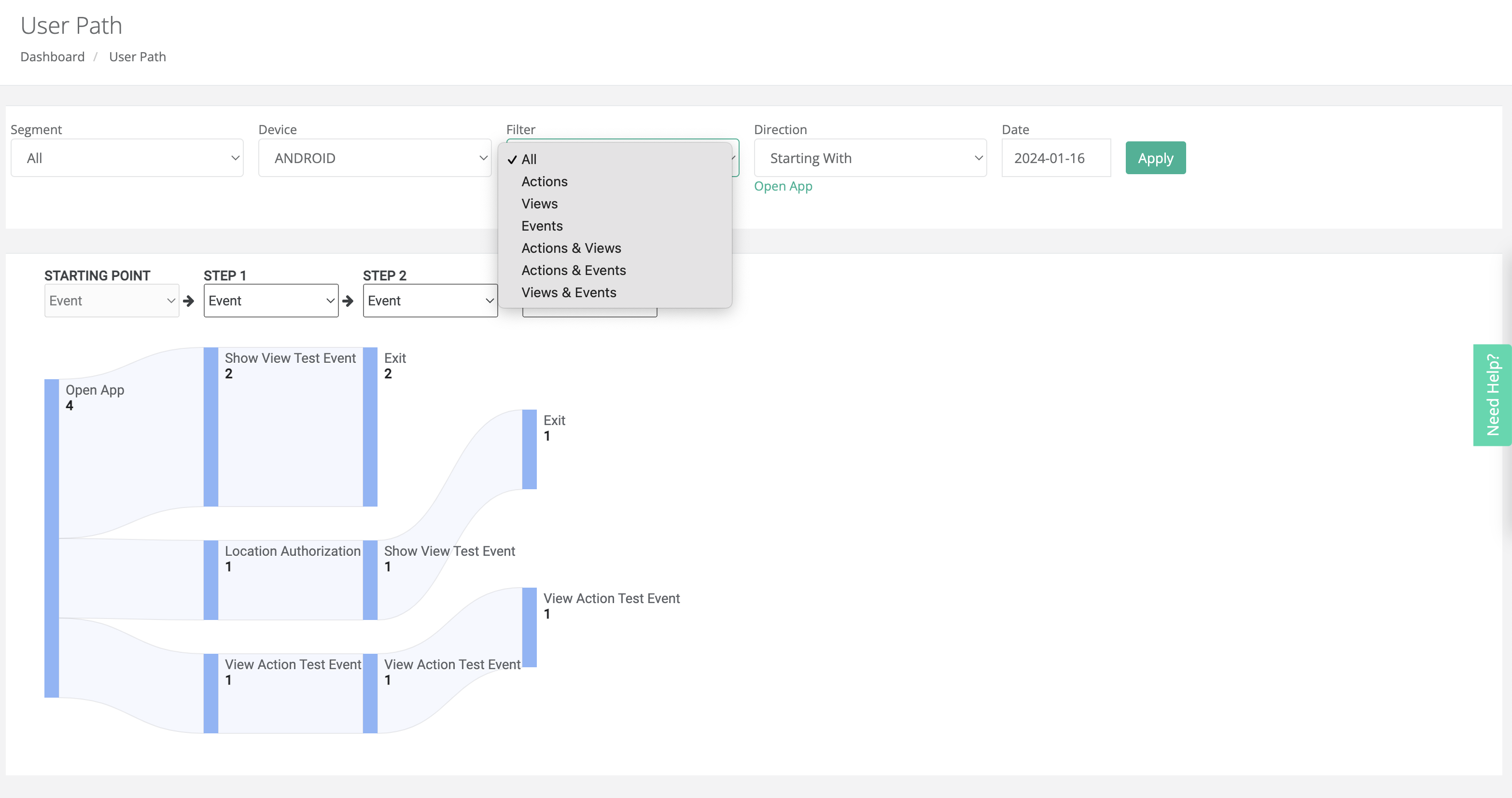 **Path:** `Analytics > User Path`