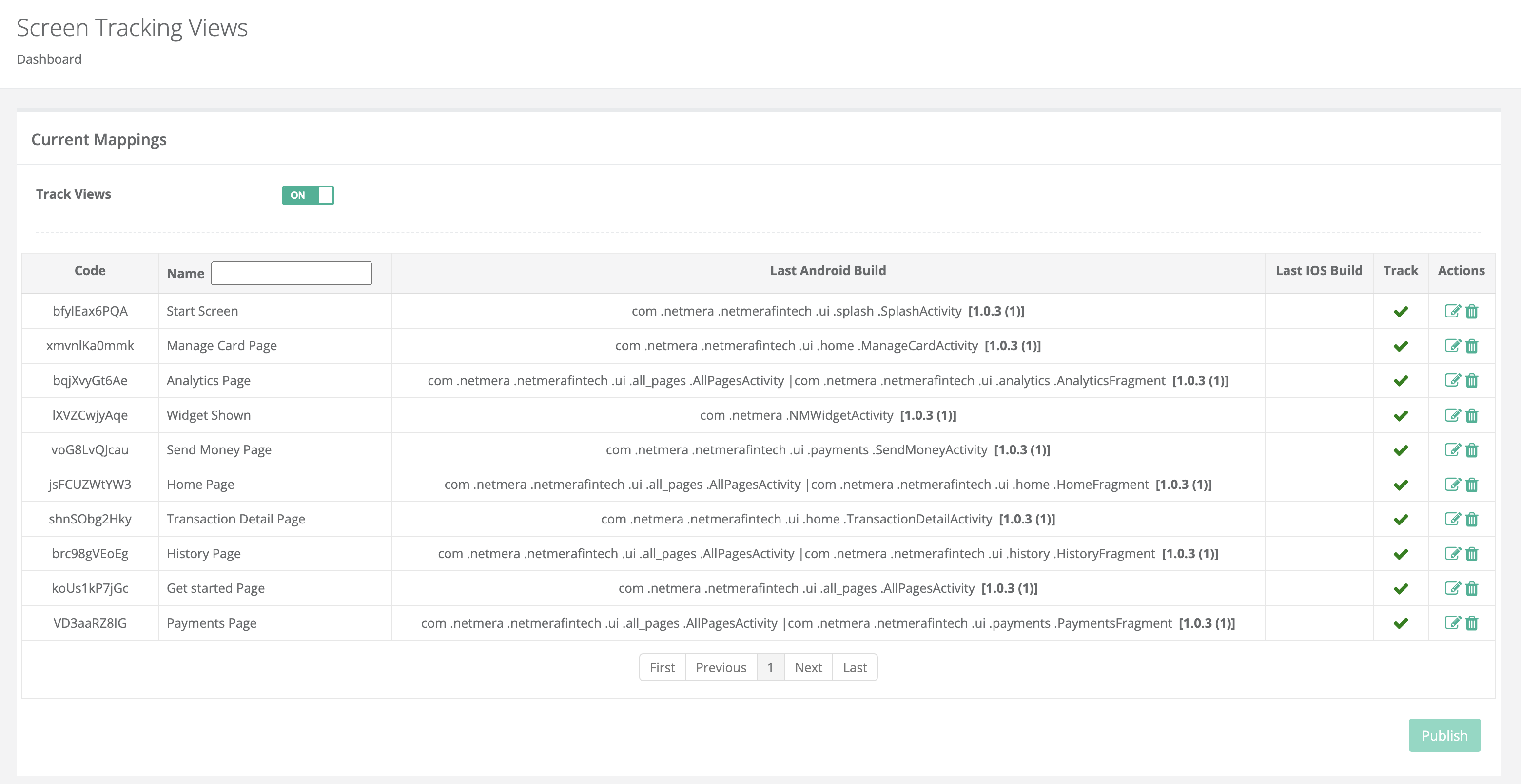 After saving, return to the **Views / Actions** dashboard and click the **“Publish”** button.