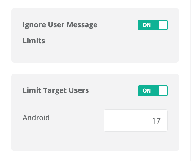 <figure><img src="https://1642824329-files.gitbook.io/~/files/v0/b/gitbook-x-prod.appspot.com/o/spaces%2FX6uilbEAw42gqsudlclY%2Fuploads%2FgZzZ9xeiRj5GaOAtLWl7%2FScreenshot%202023-04-14%20at%2014.24.32.png?alt=media&#x26;token=fa0a3149-4e2f-44aa-ae50-9dd53aa8d877" alt="" width="462"><figcaption><p>Limit target users</p></figcaption></figure>