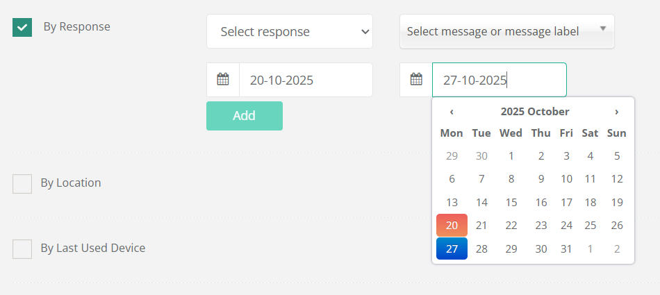 You can include users who clicked, opened, or ignored a previous message. You can also limit the filter to a date range.
