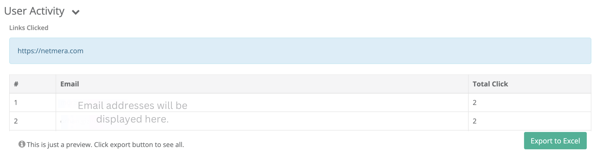 Email: Displays the email addresses of recipients who interacted with the campaign by clicking links.