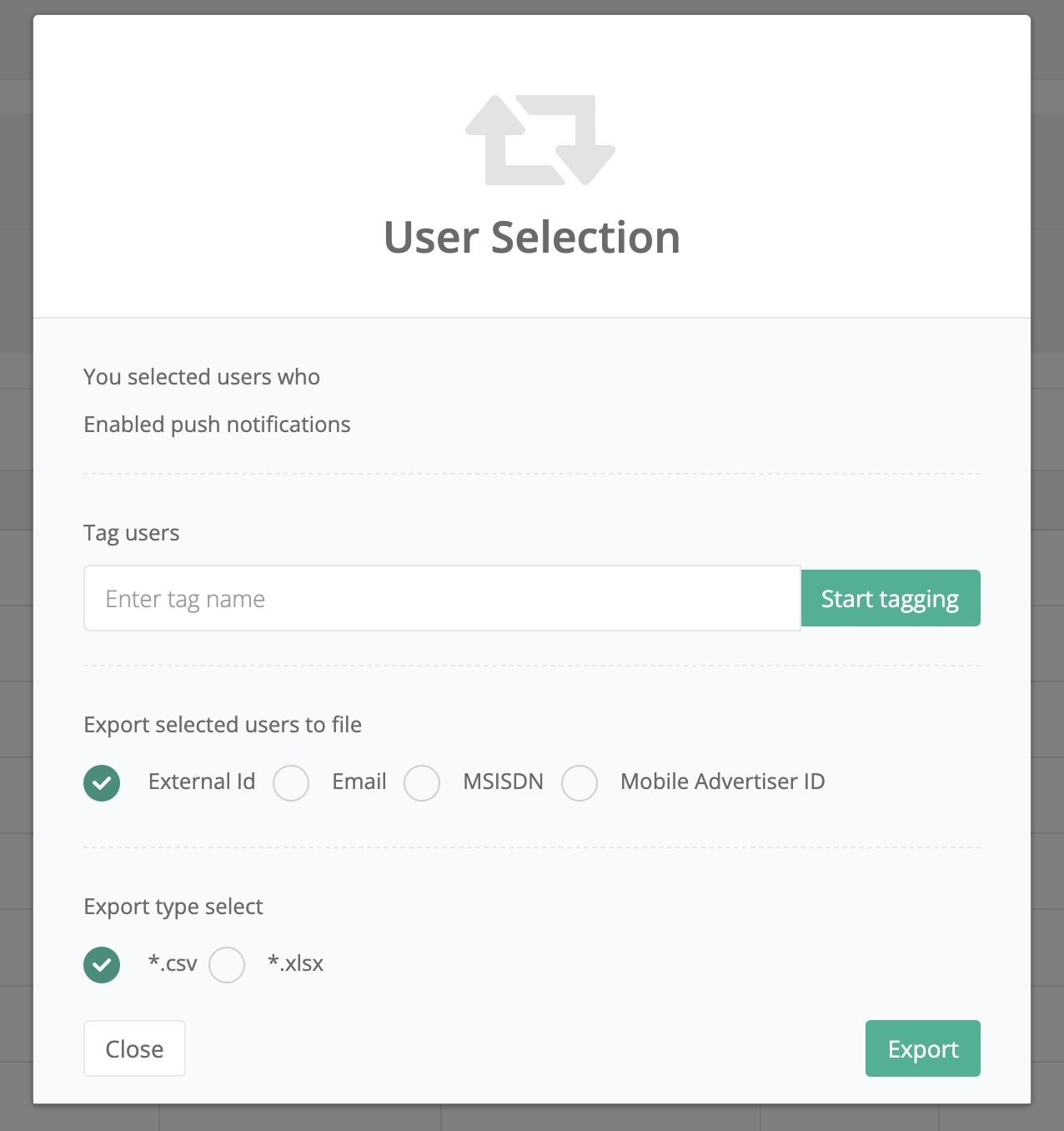 You can export multiple user identifiers in the same file. This export uses the same behavior described in [Export Module](https://user.netmera.com/netmera-user-guide/targeting/export-users).