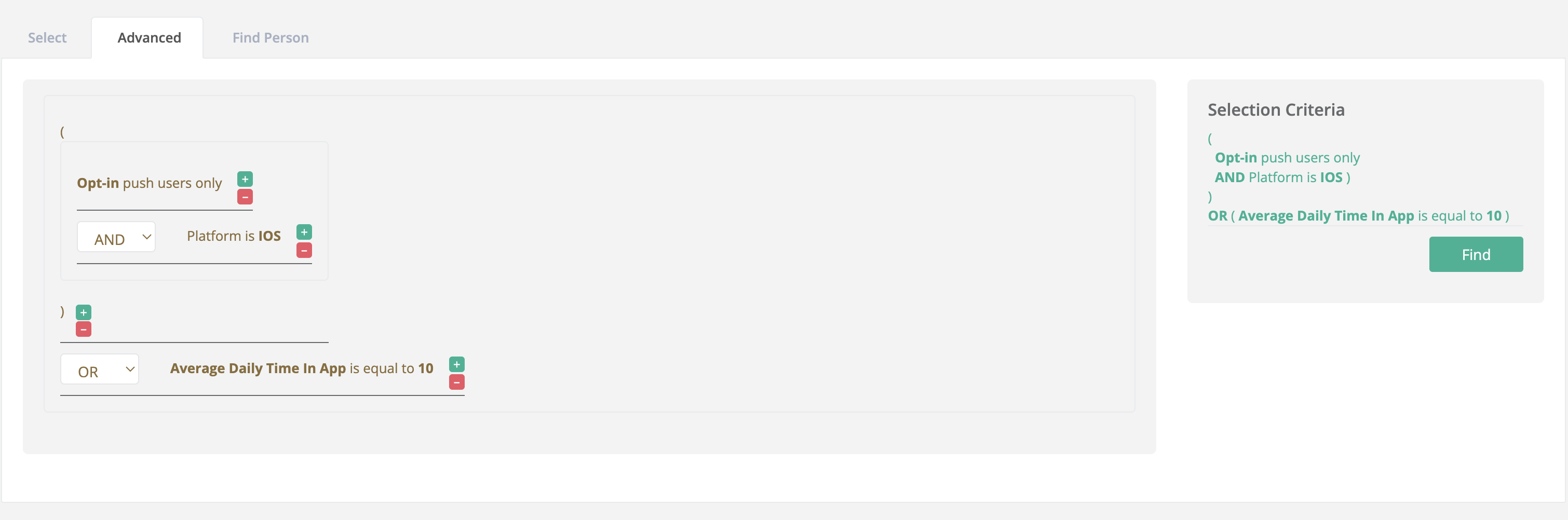 Select People is the fastest way to build a list. You combine filters and review the resulting users.