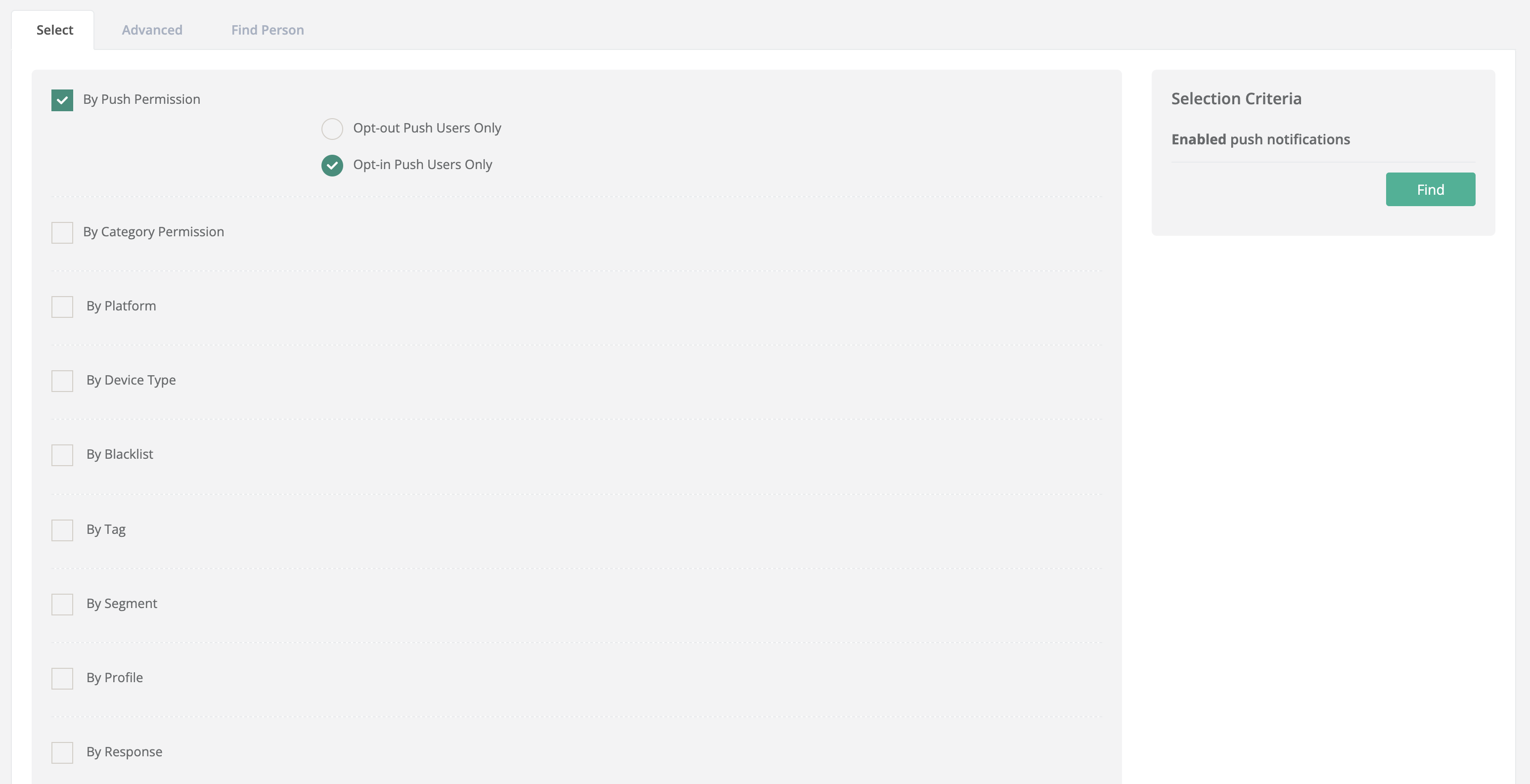 * **Push Permission**: targets users who allowed or blocked push notifications.