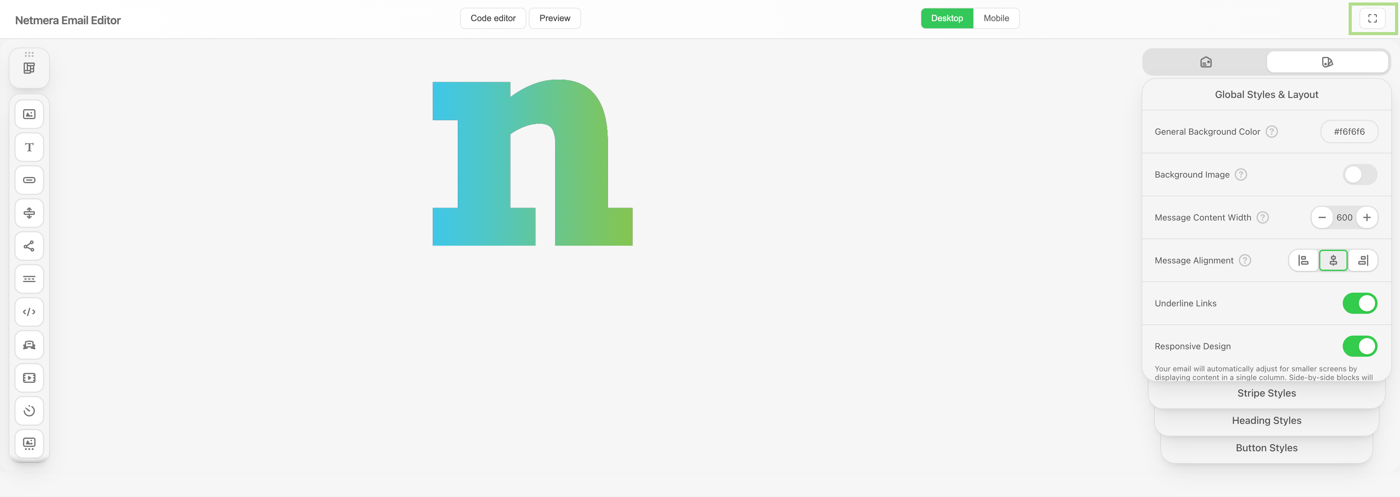 * Open the email editor in expanded view
